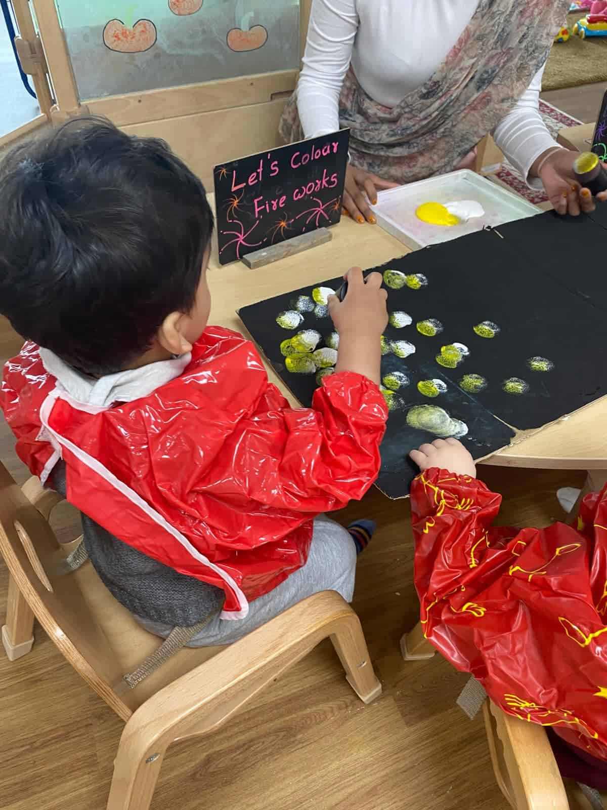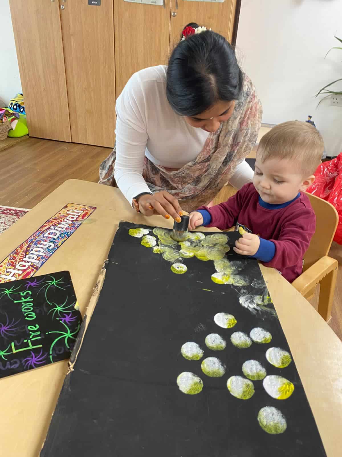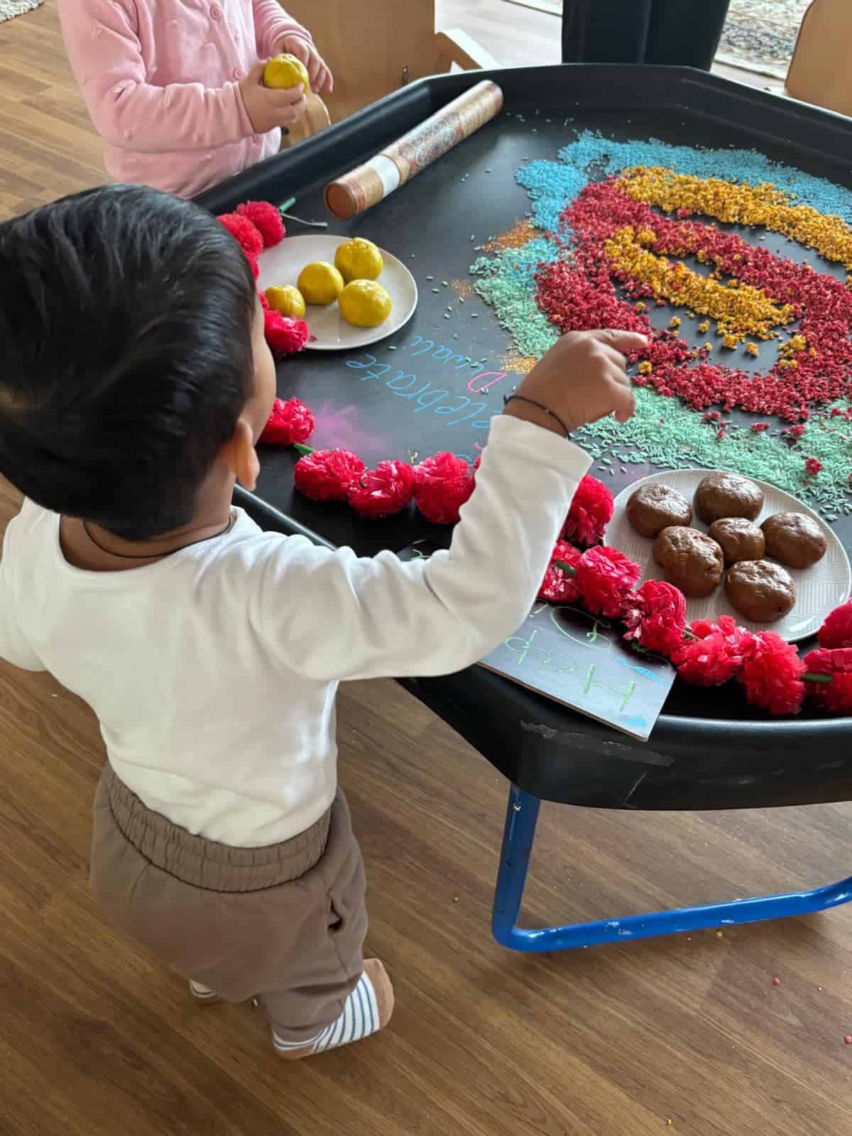 We hope those who celebrated Diwali & Bandi Chor Diwas had a wonderful time. The children had a fantastic day exploring the Rangoli tuff trays, decorating edible rice cake rangolis & making lanterns. We talked about the safety & dangers of fireworks.